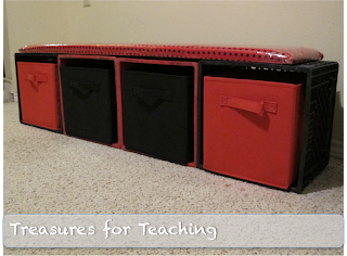 Since my kiddos will use it as a bench seat during small group instruction, I'll probably keep their materials in the totes for easy access.